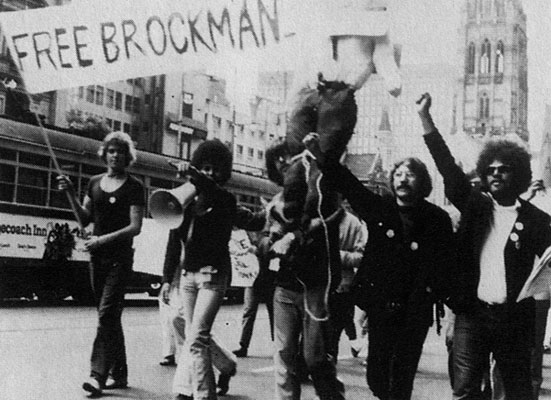 Bobbi Sykes, Bruce McGuinness and Bertie Williams lead Melbourne Lionel Brockman demonstration, 1972.