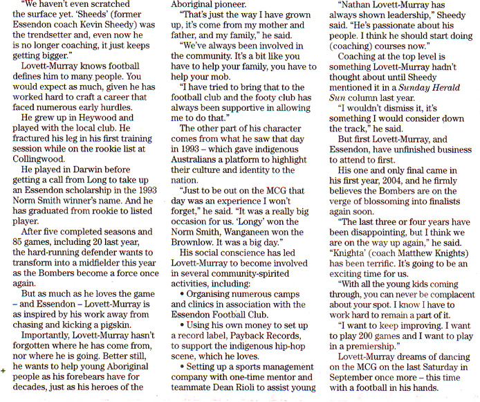 Sunday Hearld-Sun 22nd February 2009